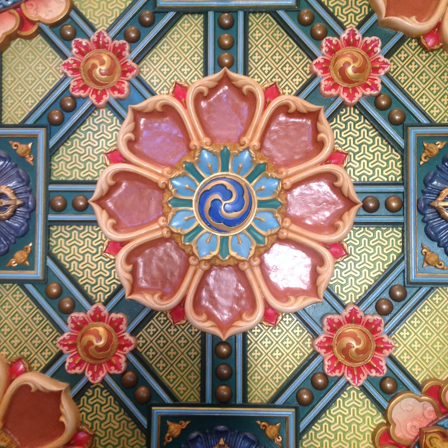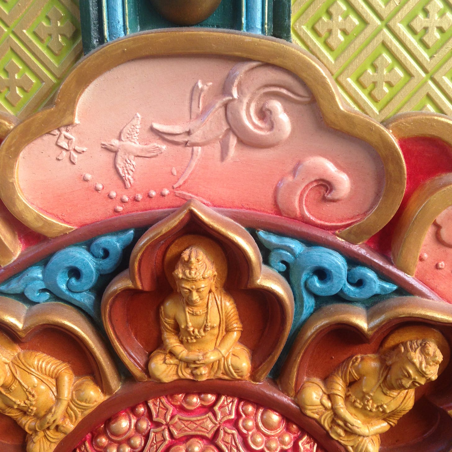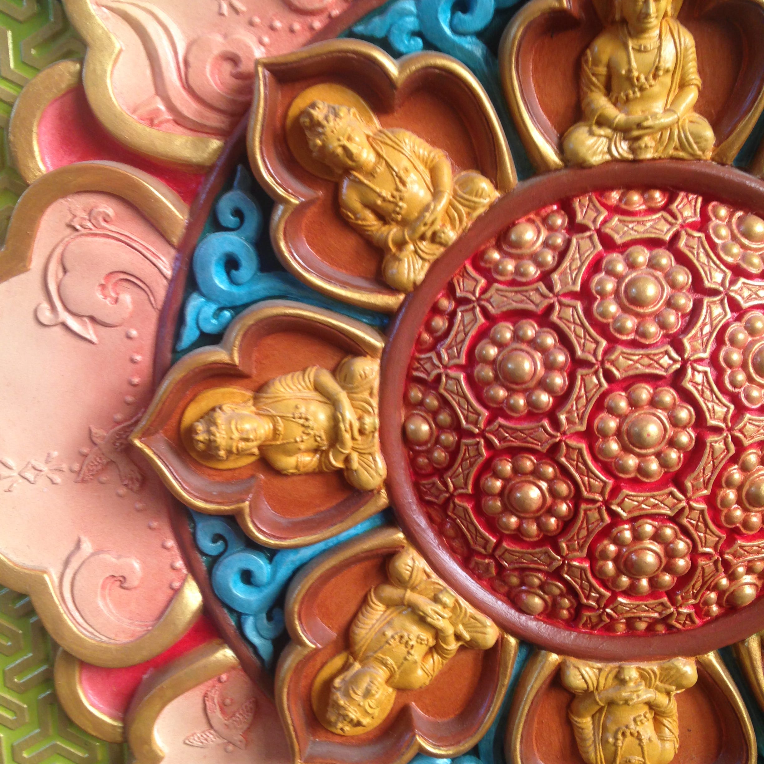 I was guided to that dharma center twenty years ago, for sure (another long story). There, my fellow lost-soul work-study residents and I participated in all the daily practices of the dharma community (ie: morning meditations, mantra recitations, sadhanas, dharma teachings) and dedicated a few hours each day to our work departments. The stupa artisans and I worked in a small studio shed next to the stupa, where the master artist--always kind, always holding vast visions in his good mind, always wearing an apron coated in dust-- would cast the plaster molds and give us instruction as to how to mix the colors and paint the dry casts (called tsa-tsas). It was like a 3-D form of paint-by-numbers and I loved it. It seemed like an absolutely perfect thing to do in my current situation (which, in reality, included homelessness, money-lessness, husband-lessness, dog-lessness--dog-less!--joblessness, happiness-lessness, etc). I had emptied myself of myself (and I now realize I do that a lot, and it’s actually not a good thing, on any practical or spiritual level. But I digress). There was just something so constructive about painting those molds so mindfully, especially after having initiated so much destruction to my domestic construct back in NYC. Each tsa-tsa or cast that we painted was about 3x3 inches and we worked on each separately, leaving it to the master artist to assemble them all into the larger compositions (which, as I already mentioned, would eventually be installed on the walls of the first floor of the stupa, long after I had departed.) I liked not knowing the end result; not knowing The Big Picture. It’s as though my mind was not even ready for that; plus, none of my Big Pictures had really worked out. And so I took on Beginner’s Mind, again and again, and that in itself became a daily cleanse, an internal cleanse of habituated thoughts.. As we worked, my fellow artisans and I talked--sparsely but meaningfully--about life-at-the-dharma-center things like the meanings of that day’s slogan (part of our ongoing Lojong practice), or yesterday evening’s sweat lodge, or the benefits of working with the Five Wisdom Energies (better than psychedelics is all I am saying. Says the person who, back in 2002, had never yet taken any psychedelics. But if you are reading between the lines, you might deduce that, since then, I have. And that there is still little that compares to the Wisdom Energies practice. But I digress again. As I said, this all amounts to a book..)